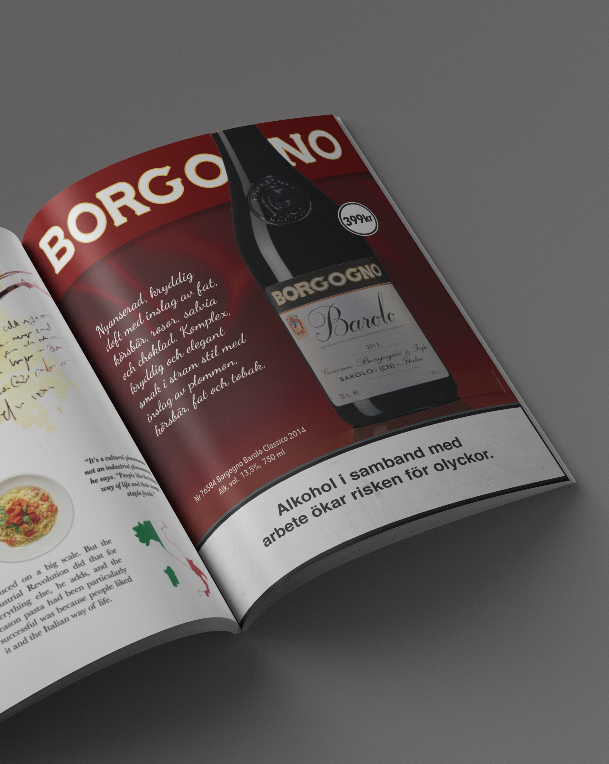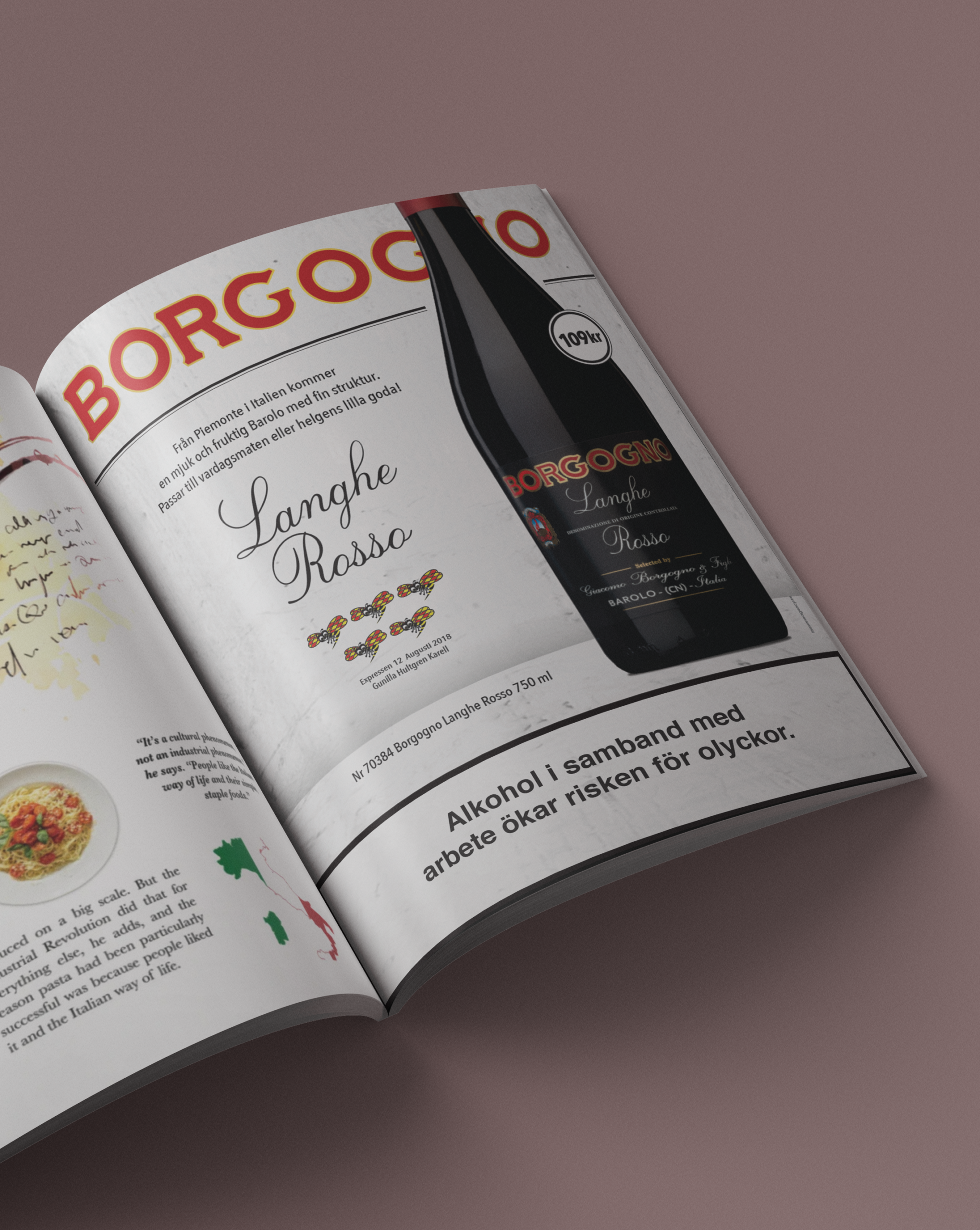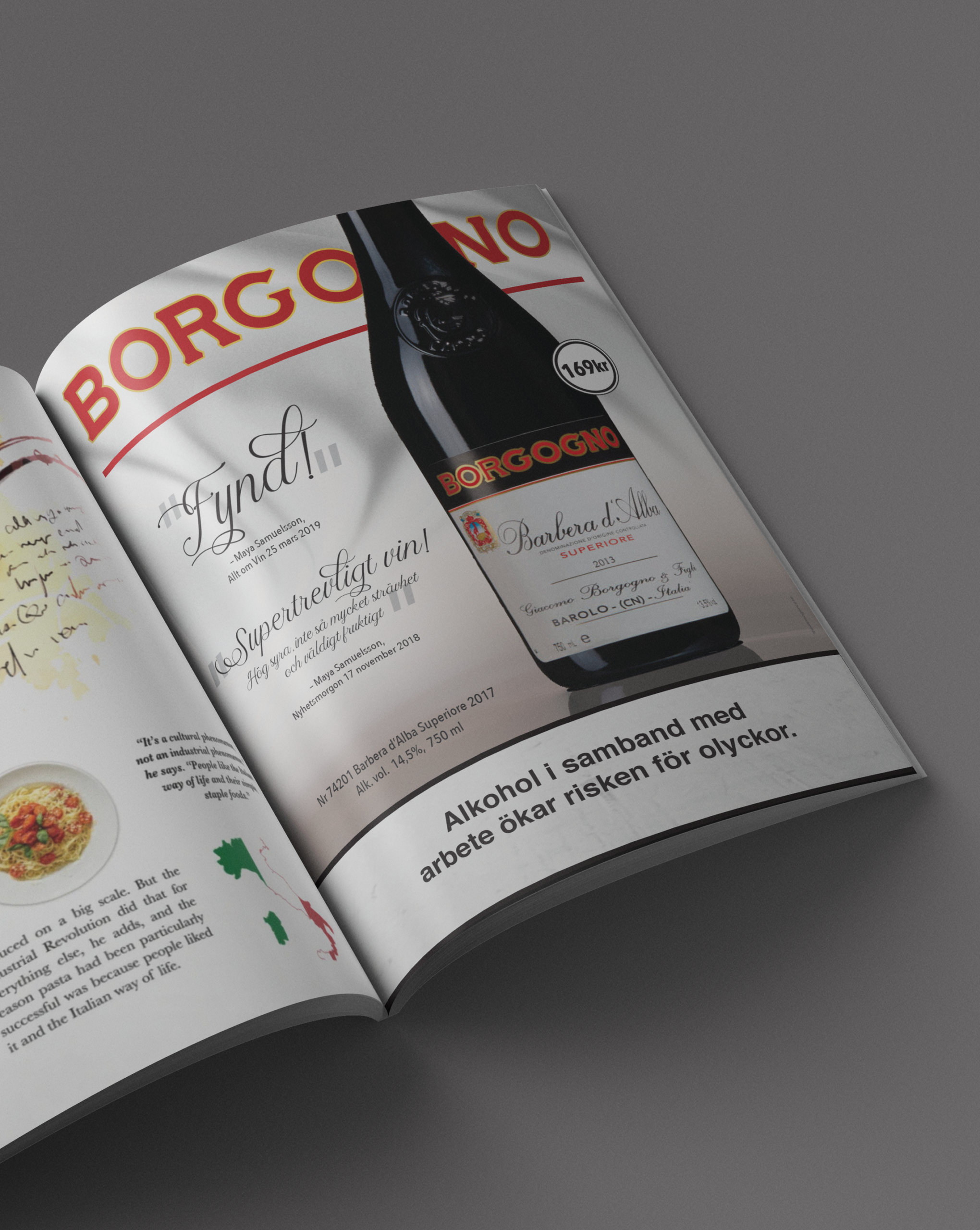 For Santa Vittoria I wanted the ad to feel warm and generous, reflecting the wine’s blended and approachable character. The bold background and clear typography create a strong, simple frame around the bottle. The idea was to let the wine feel inviting while still carrying the weight of the Borgogno brand.