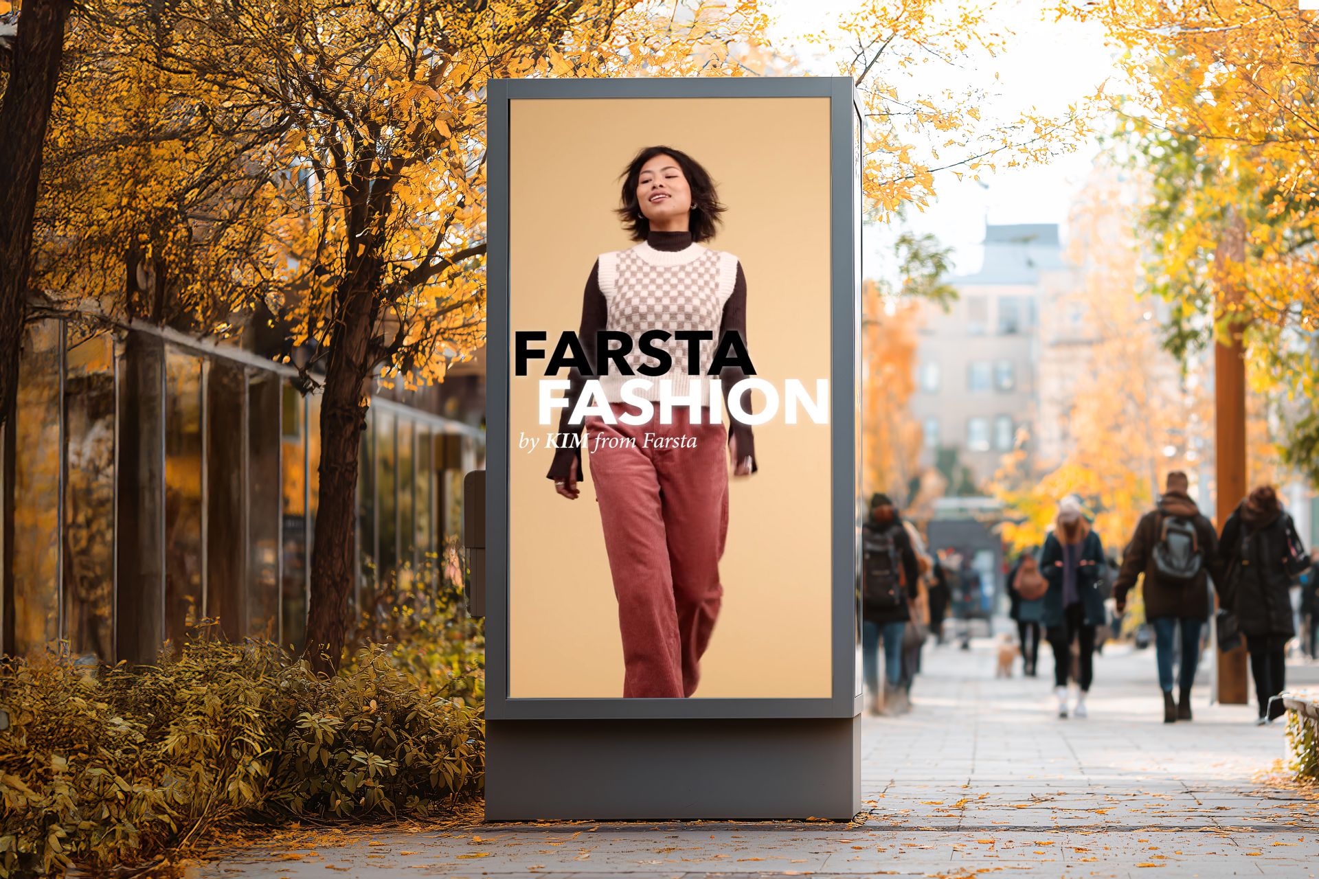 Across posters, digital screens, social media and moving content, the campaign presented Farsta as a place where fashion, lifestyle and local identity meet.