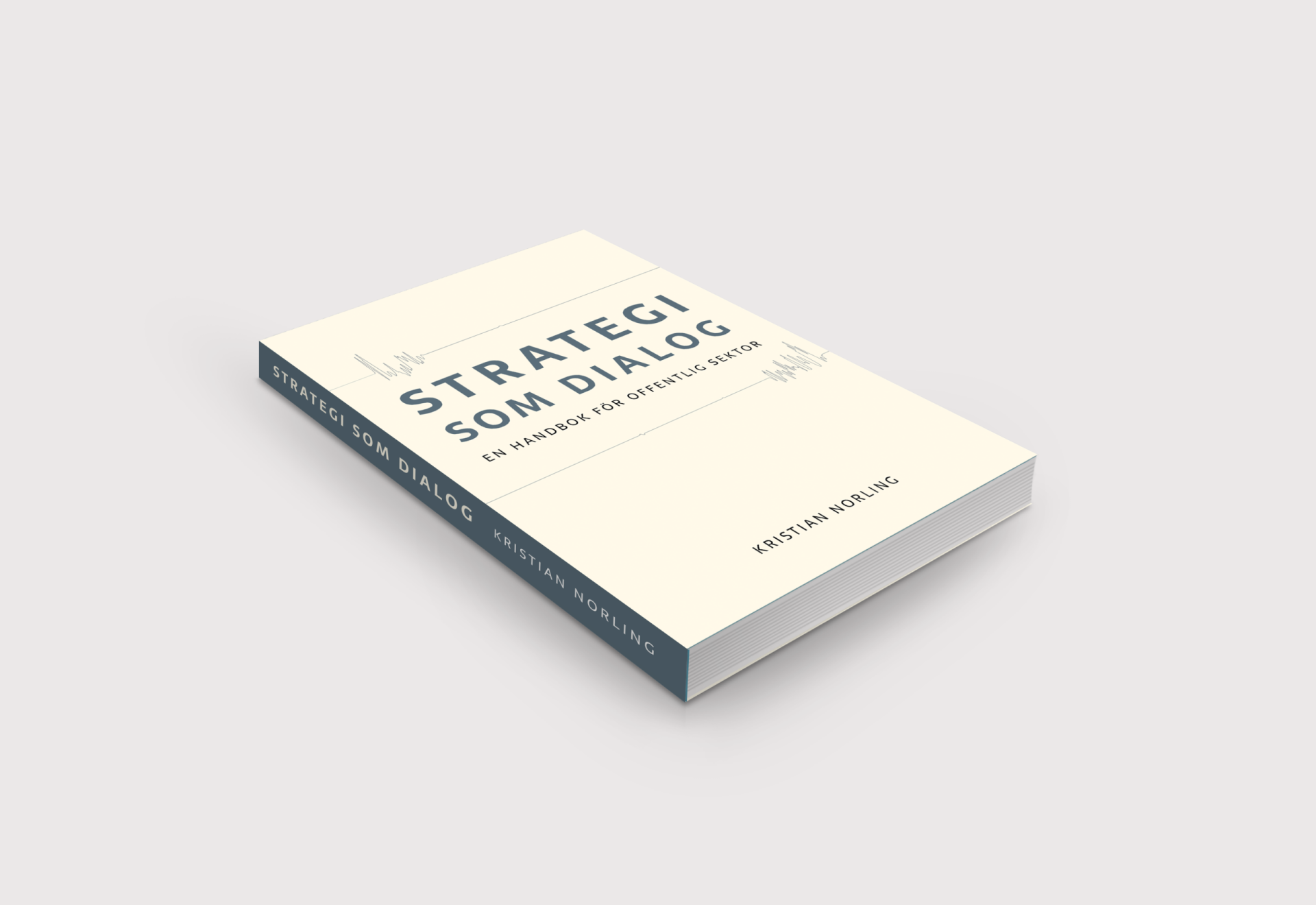 The graphic concept is grounded in actual dialogue. The thin lines on the cover are based on sound waves from conversations in the author’s podcast on strategy, a way of literally letting dialogue take form in the design, while introducing a subtle, living element that breaks the otherwise structured surface.